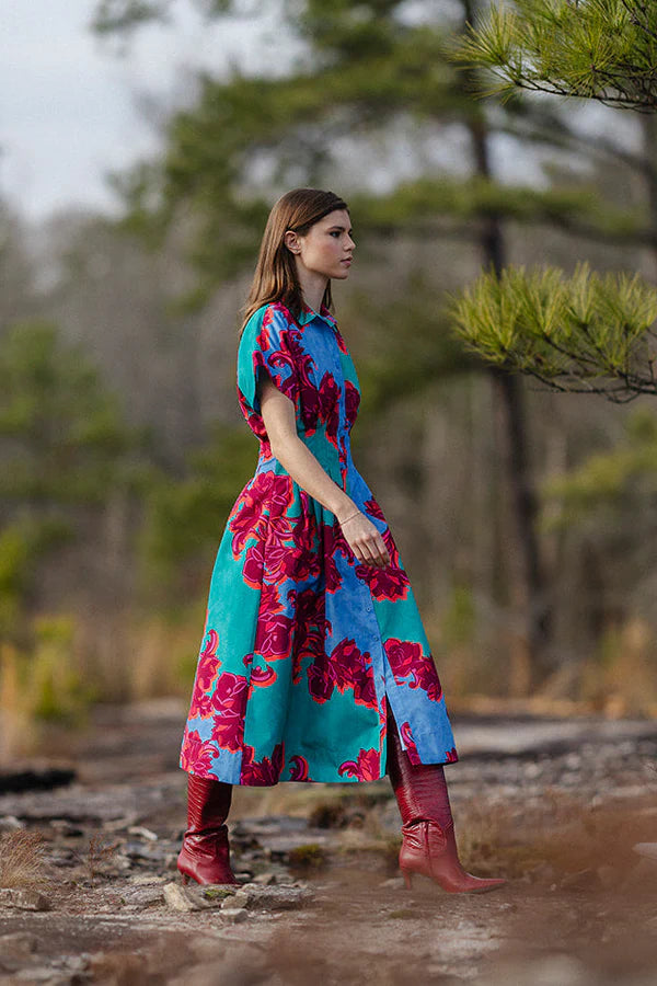 The Becca brings an effortless cool look with its cactus flower print and flattering silhouette. Featuring a button-up front, short sleeves, and a cinched waist, it’s a bold go-to that can transition from work day to girls' night.
