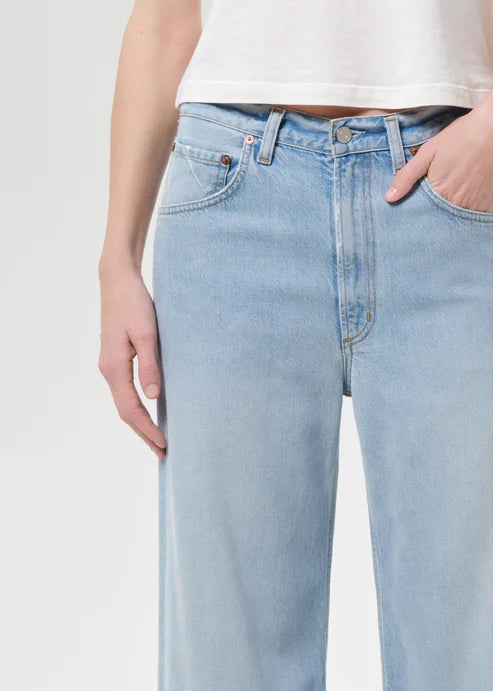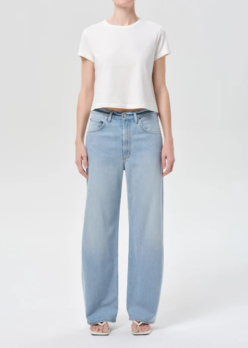 The Low Curve Jean features a mid-rise fit with a soft ease at the waist, a curved outseam, and a subtle taper for a flattering silhouette. Crafted from vintage medium indigo denim with fading and whiskering, it offers a worn-in, timeless appeal. Made from regenerative and recycled cotton, these jeans offer a beautiful drape, combining both comfort and style. Pair with a simple tee or sleek blouse for a versatile, effortlessly chic look.
