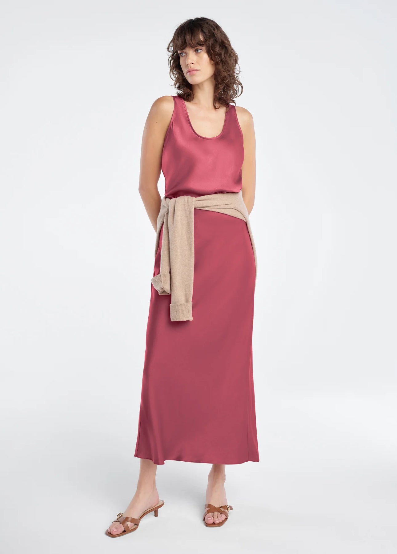 For special occasions. Any occasion, actually. The bias-cut Favorite Skirt in our Earth Red has a high, pull-on waist and a billowy fit that hugs in all the right places. Measuring 34.5" from waistband to hem, it's cut from hammered satin that's super easy to style up or down.