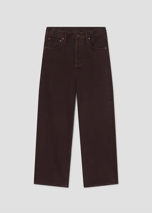 AGOLDE’s Ren Jean offers an elevated take on the classic wide-leg silhouette. Made from 100% rigid, non-stretch regenerative cotton, these high-rise jeans feature a deep grape tone with brown undertones and subtle marbling. The cropped wide legs create a relaxed yet flattering fit, while the heavyweight denim ensures all-day comfort. Pair with neutral tones or a crisp white top for a polished look.
