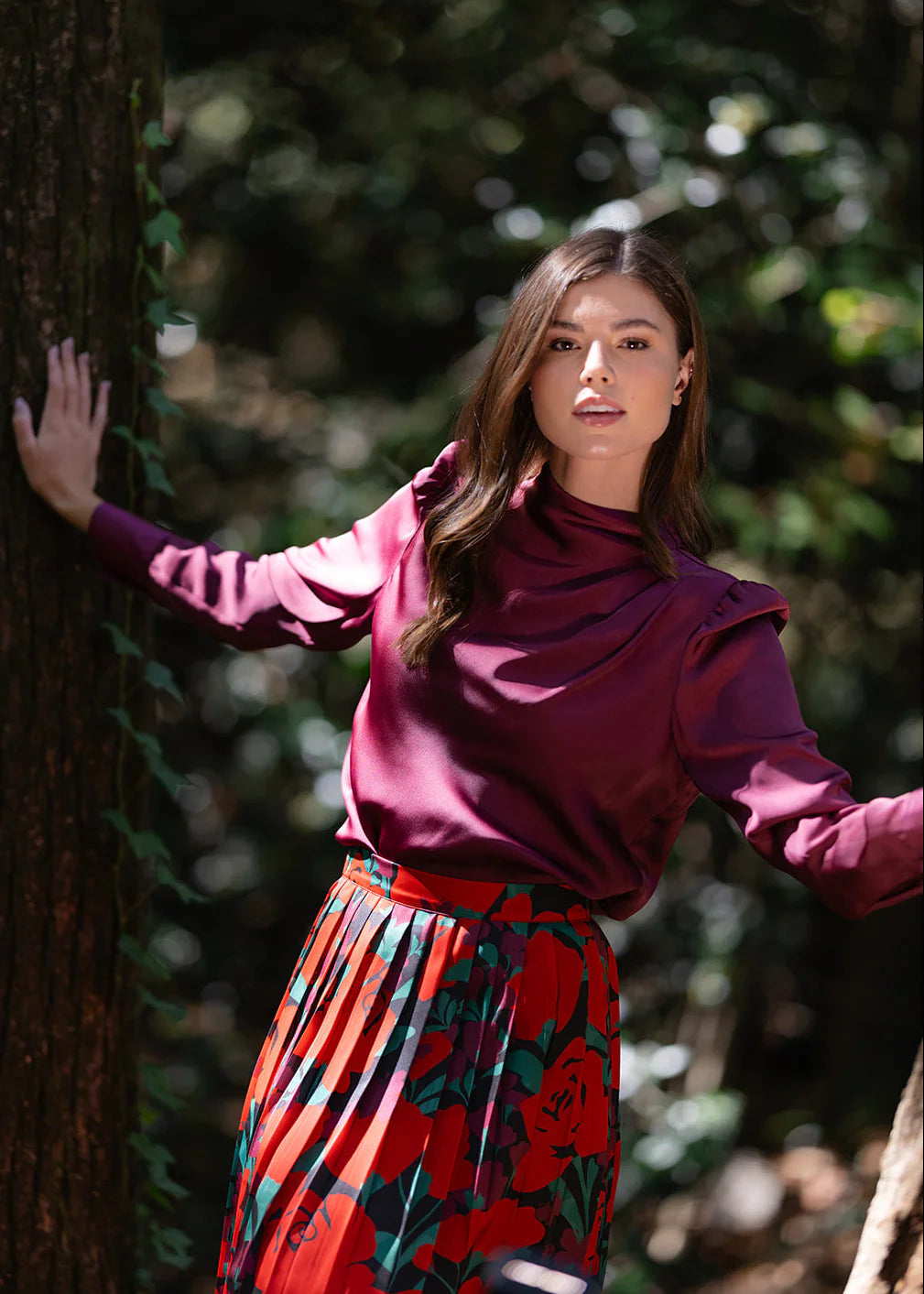 Calling all boss babes! The Scarlett Top is a perfect day to night option for a busy work day at the office or a happy hour at 5. Featuring ruching, puff sleeves and button detailing at the wrists.